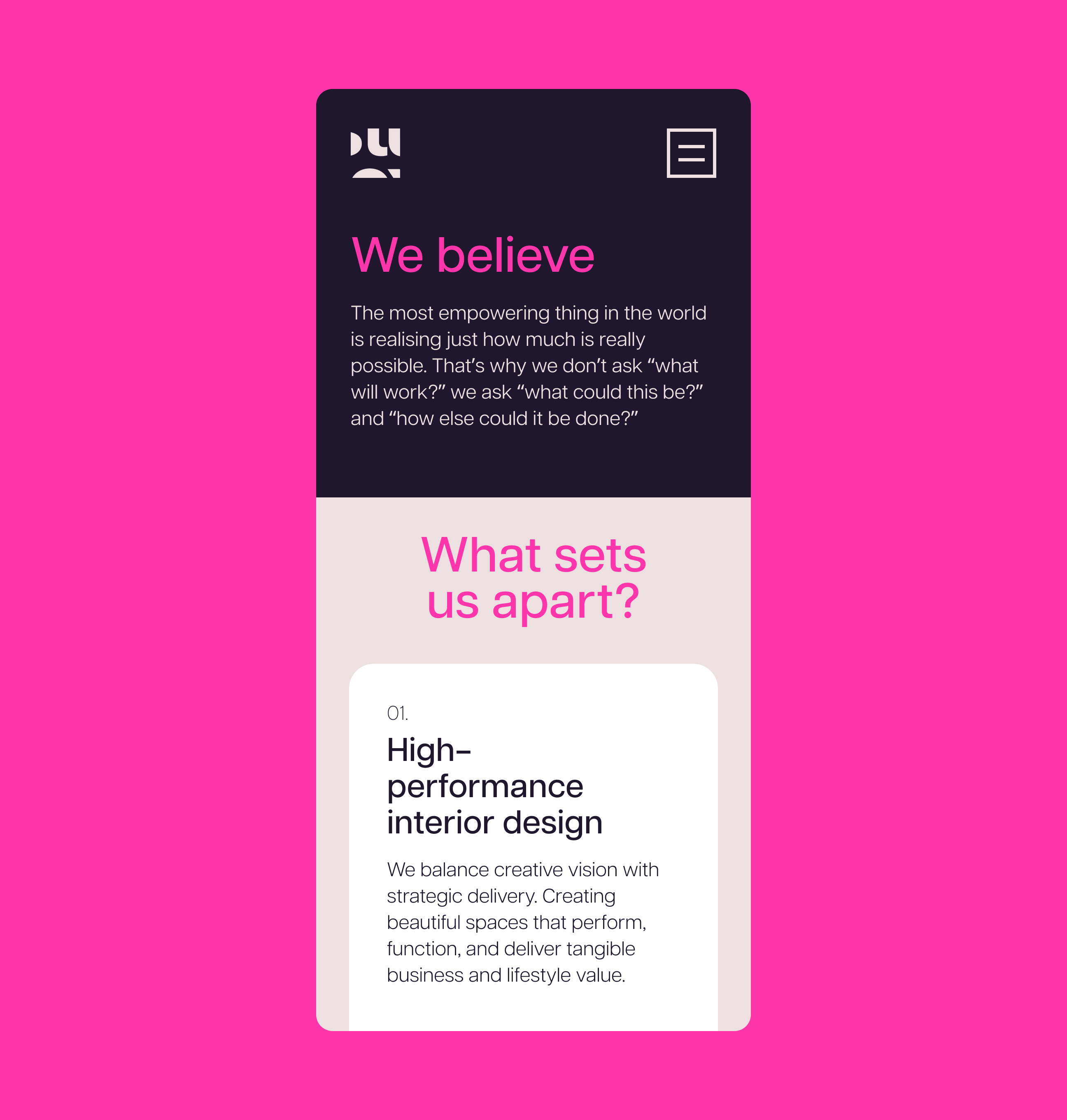 A bold, contemporary rebrand for an interior design studio ready to step into a more modern, confident space.